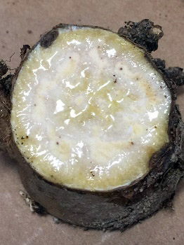 А. Джейн Барлоу и растение Lomatium Dissectum в дикой природе. Б. Кореннь Lomatium Dissectum на поперечном разрезе. Джейн Барлоу: "Мой друг, ты видишь масла, сочащиеся из него? Это то, что придаёт LDM-100 его СИЛУ".